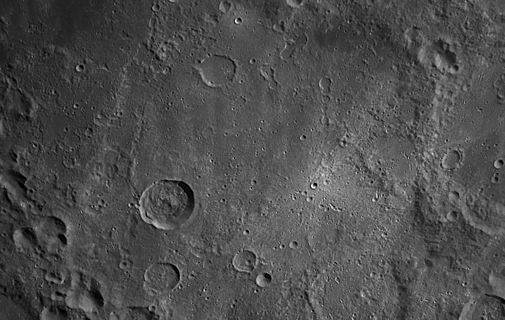 The Moon with a 355 mm Newtonian on May 9, green and red filters, ASI174MM in fair to good seeing.