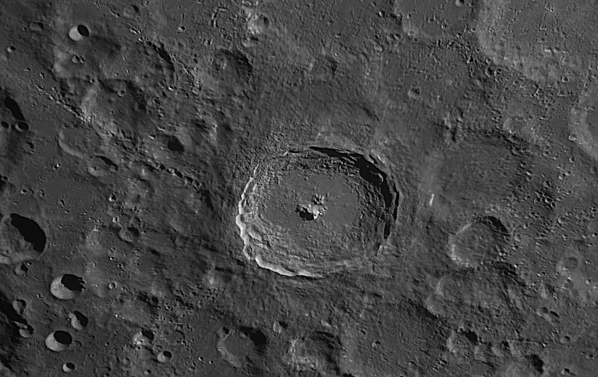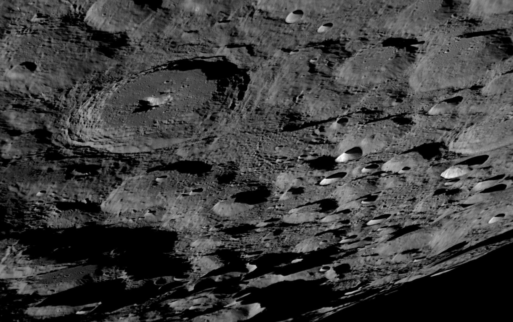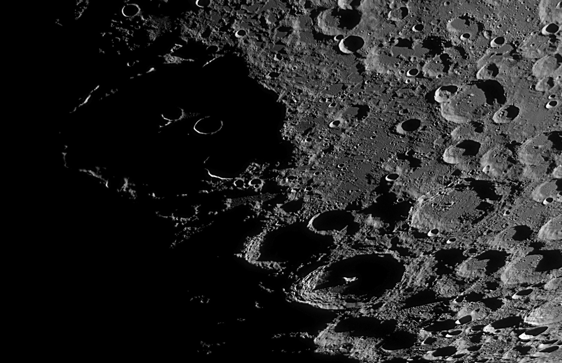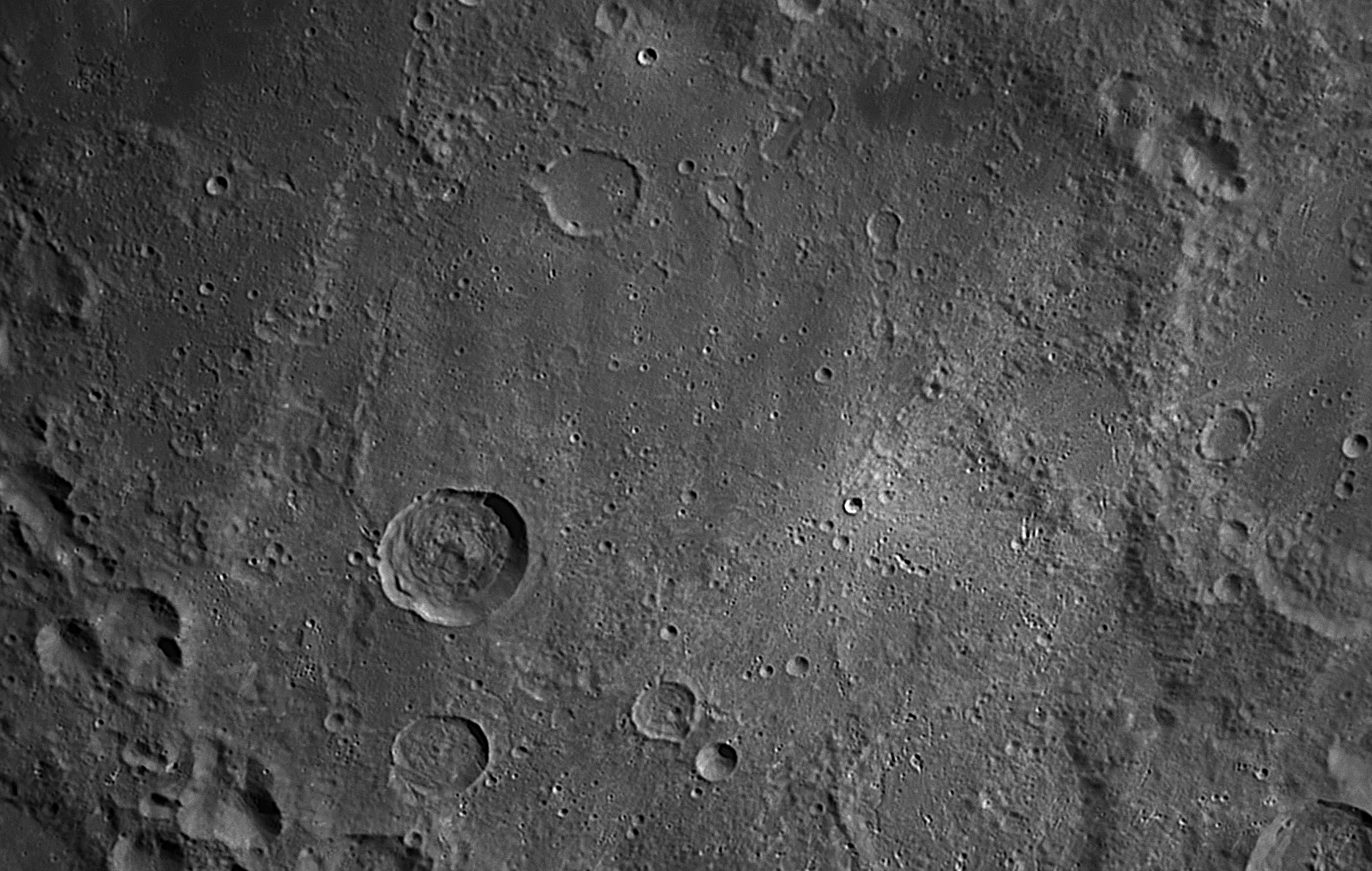 The Moon with a 355 mm Newtonian on May 9, green and red filters, ASI174MM in fair to good seeing.